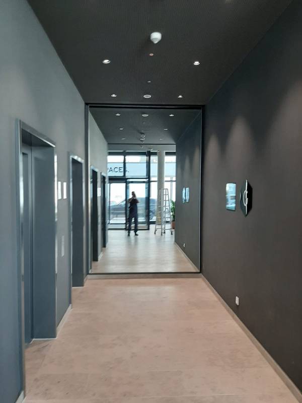 Der Spiegel liegt auf einer 10 mm Trägerscheibe, um Verzerrungen zu vermeiden. Er wurde in spezialangefertigte Spiegelschienen montiert. Diese bestehen aus 4 bzw. 6 mm starkem Stahl der pulverbeschichtet ist.