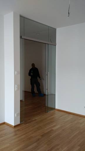 Montage an Glas und Wand zur Maximierung der Durchgangsbreite