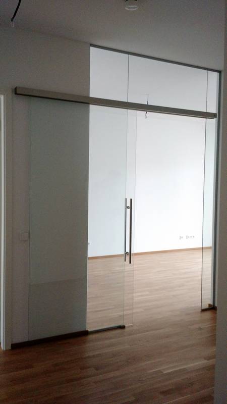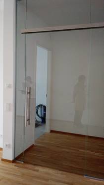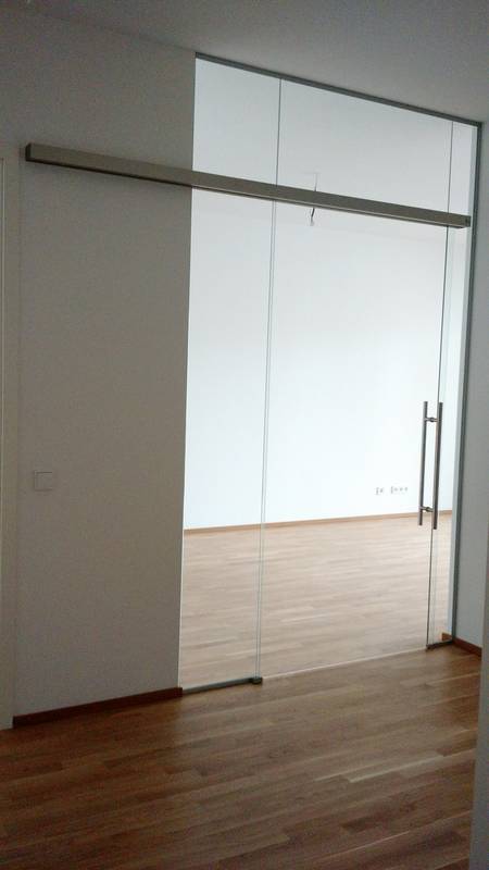 Ganzglasanlage mit Schiebetür