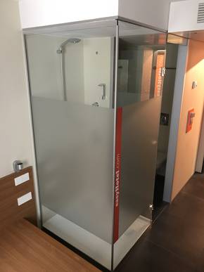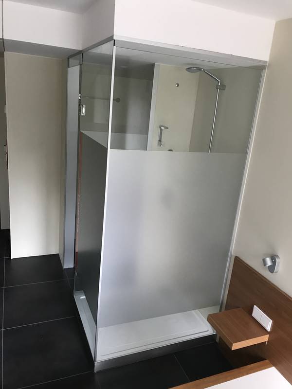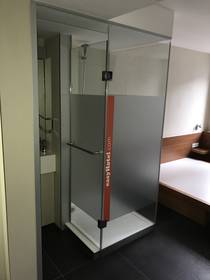 GLASBAU HAHN hat eine Etage eines Hotels im Frankfurter Bahnhofsviertel mit Duschkabinen ausgestattet. Auch hier eine elegante Lösung auf kleinstem Raum, da das kleinste Zimmer gerade einmal 24 m² hat.