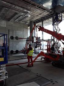 Die Herausforderung dieser Montage war die Arbeit mit 2 Kränen im Tandemhub, da der Boden nur begrenzt belastbar ist.