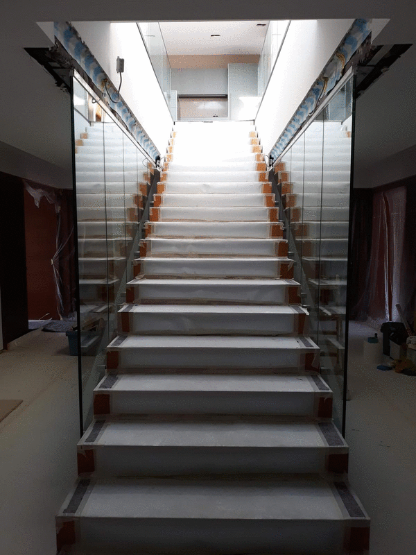 HAHN - Ganzglasgeländer / Sonderkonstruktion mit flächenbündigen Edelstahl-Punkthaltern