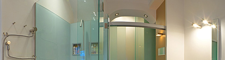 Glasduschabtrennungen und Glaswände, Glaswaschtische, Spiegel, Dreh- und Schiebetüren, Badmöbel und Glasböden mit Beleuchtung und Heizung.