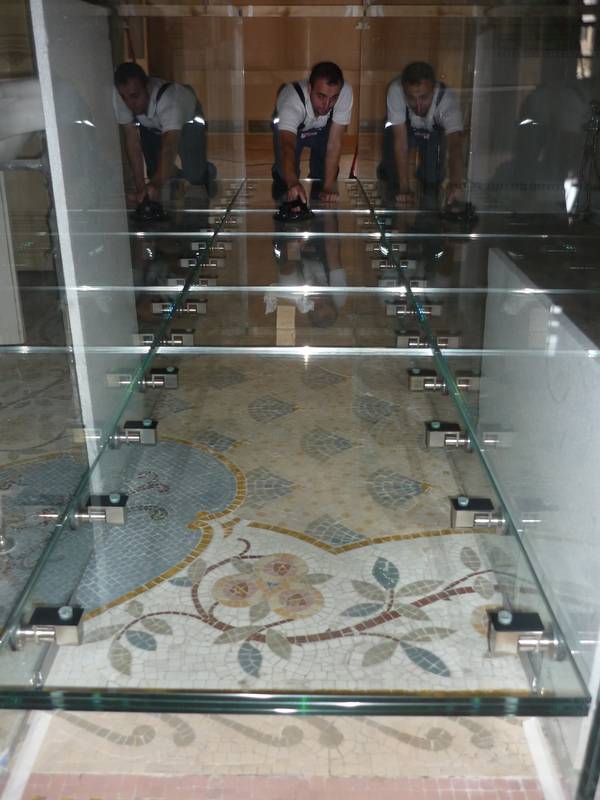 Immer wenn es besonders anspruchsvoll wird, sind die Glasingenieure und -techniker von GLASBAU HAHN weltweit Ansprechpartner erster Wahl: so wurde das Traditionsunternehmen beauftragt, für das Royal Jewelry Museum in Alexandria eine Ganzglasbrücke zu konstruieren, die den Besuchern den störungsfreien Blick auf ein kostbares Bodenmosaik im Badesaal der ehemals königlichen Villa freigibt.