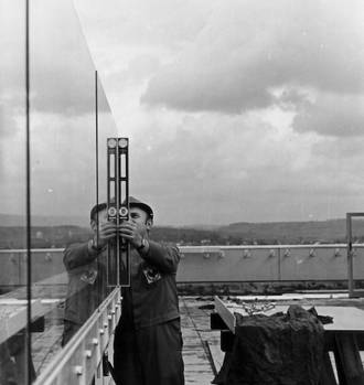 1965 Erfindung der "hängenden Verglasung", was die Anwendung von Glasscheiben in theoretisch unbegrenzter Höhe ermöglicht. Diese Entwicklung hat die Architektur in Europa und den USA für 2 Jahrzehnte beeinflusst.
