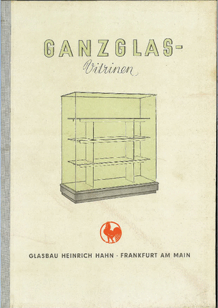 1938 Ganzglas-Vitrinen mit eingebautem Schiebetür-Beschlag, mit 3-Wege Funktion, um einen hohen Grad an Luft- und Staubdichtigkeit zu erreichen