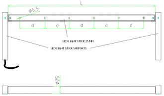 Das Aluminiumprofil hat einen Durchmesser von 25 mm und eine Länge von 0,5 – 3 m. Der Stab kann 5 bis 22 LEDs aufnehmen. Die Profillänge, die Anzahl und der Abstand zwischen den LEDs können entsprechend Kundenwunsch gefertigt werden.