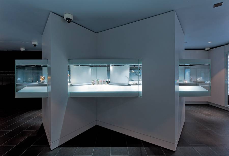 Die neuen Vitrinen bieten vollen Zugang zu ihrem Innenraum, dank eines speziellen Öffnungsmechanismus: Die Glaswände bewegen sich mit Hilfe von Motoren im Boden und Deckel auseinander, wodurch sich die Vitrine in zwei Hälften öffnet. Jede Vitrine ist mit einem hoch flexiblen, dimmbaren Lichtsystem ausgestattet. Es besteht aus LEDs, die in der Decke installiert sind und aus herausnehmbaren LED Lichtstäben in allen vier Ecken.