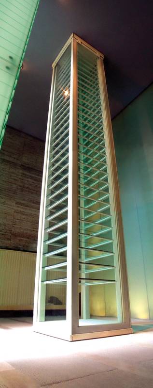 2001 hat GLASBAU HAHN einen Weltrekord im Bereich Vitrinenbau geliefert. Die 9 m hohen Glasscheiben beherbergen die Namenskarten von 70.000 Opfern. Die Vitrine passt perfekt zur Architektur der nationalen Gedenkstätte für die Atombombenopfer von Nagasaki, vom Architekten Akira Kuryu.