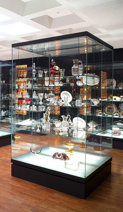 Die Vitrine besteht aus einem variablen System von Elementen, die individuell zusammenstellbar sind: Glaspanele, Böden, Lichtkästen und Tabletts erlauben die Erstellung von vielseitigen Vitrinen-Grundrissen, die jederzeit verändert und erweitert werden können. Sie lässt sich leicht zerlegen, platzsparend transportieren, lagern und ohne Expertenhilfe aufbauen. Sie eignet sich somit besonders für wechselnde Ausstellungen mit unterschiedlichem Raumbedarf. Jede Scheibe ist eine 3-wegige Schiebetür und garantiert so optimalen Zugriff auf die Exponate und erleichtert die Innenreinigung.